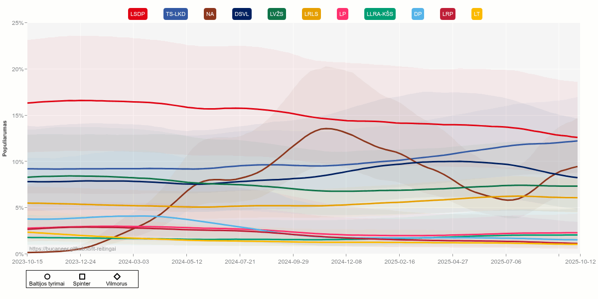 Lietuvos partijų reitingai ir Seimo rinkimų prognozė (atnaujinta 2025-10-23)